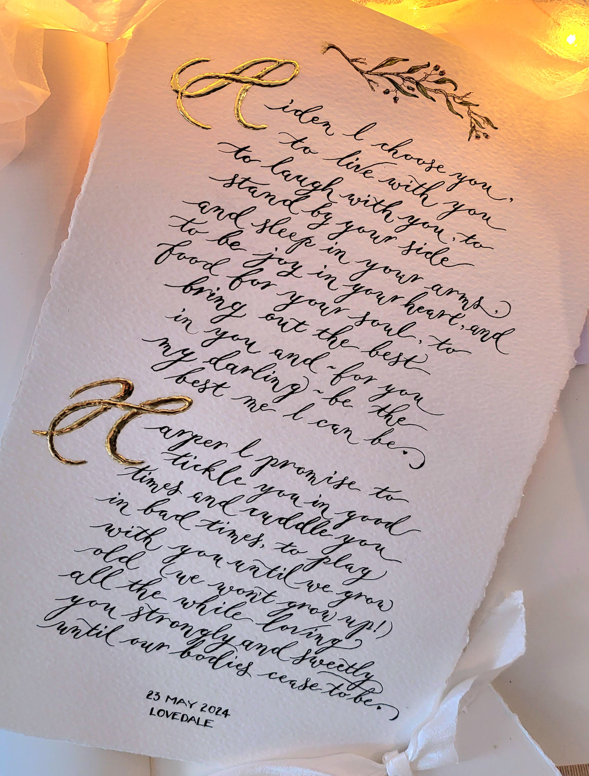 Bespoke Handwritten Calligraphy, with Artisan Gold & Silver Leaf Gilding